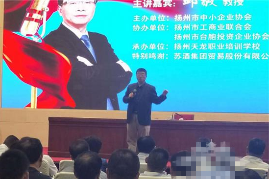 中國臺灣網7月30日揚州訊 28日,臺灣中國文化大學教授邱毅先生赴揚州,講授“新時代中國經濟新戰略,企業如何趁勢崛起”專題講座。揚州市近千名中小企業家、臺商代表等參加講座,了解當今世界的最新宏觀經濟形勢,為企業創新發展提供戰略思維支持。揚州市臺辦、市中小企業局等部門領導聆聽講座。