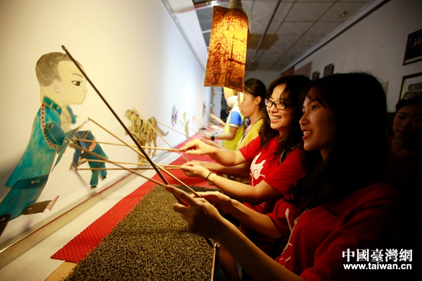 暑學(xué)營(yíng)的兩岸青年觀看并體驗(yàn)了世界非物質(zhì)文化遺產(chǎn)——泰山皮影戲。(圖片來(lái)源:山東省臺(tái)辦)