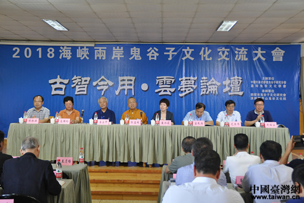 中國臺灣網8月1日鶴壁訊 7月31日,2018海峽兩岸鬼谷子文化交流大會在河南省鶴壁舉行。河南省臺辦副主任崔興莉,農工黨省委副主委花亞偉,鶴壁市人民政府副市長高雅玲,先秦史學會鬼谷子研究分會名譽會長房立中,臺灣鬼谷文化學會創會會長張益瑞等出席會議。