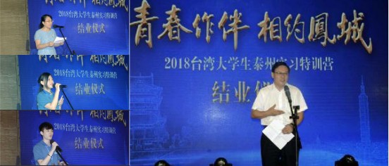 “青春作伴 相約鳳城”2018臺灣大學生泰州實習特訓營結業(yè)儀式現(xiàn)場。(圖片來源:泰州市臺辦)
