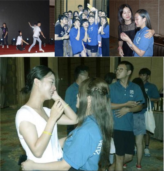 結業(yè)儀式之后,兩岸的大學生們還以朗誦、歌曲、舞蹈等多種形式表演了《三杯吐然諾 五岳倒為輕》、《紙短情長》、《開場的旅行青蛙》《薩克斯風組曲》等節(jié)目,其中臺灣同學表演的《半糖微冰》《光之美少女》引得大家不住喝彩、揮手、鼓掌,將全場一度推向了高潮。晚會在歡聲笑語中結束,臺灣同學們跟工作人員拍照合影留念,不忍分別止不住流下了眼淚。