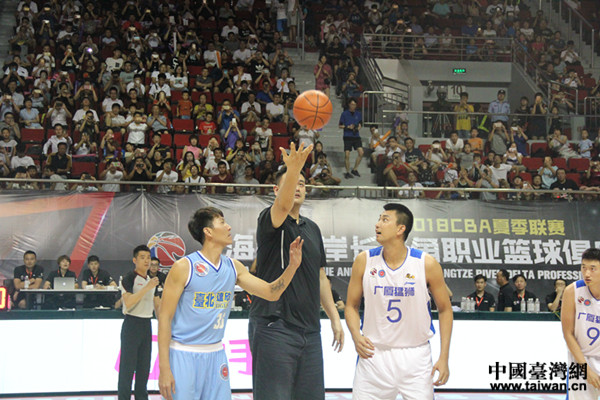 姚明為運動員開球。(圖片來源:上海臺辦輝哥、李昊攝影)