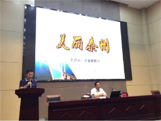 泰州市臺辦邀請到原泰州學院黨委書記、現任泰州市工藝美術協會會長、泰州市歷史文化研究院副會長、獲“泰州教育20年十大功勛人物”表彰的徐金城教授以《美麗泰州》為主題,帶領兩岸60多名青年同學就中華傳統文化和泰州歷史文化進行專題研修。本次他主要以《三水激蕩風光如畫、漢唐古郡歷史悠久》《文化繁榮群星璀璨、文脈深厚人才輩出》《風景秀麗環境優美、景點迷人旅游興旺》等為題從水文化、鹽稅文化、泰州學派、文學藝術、戲曲文化、佛教文化、建筑文化、旅游文化、美食文化等方面與大家進行分享。徐金城教授還向每位同學贈送自己所著的《美麗泰州》一書,通過解讀“美麗”,希望臺灣大學生深入欣賞到泰州文化沃土的深厚積淀、文化精髓的博大燦爛。