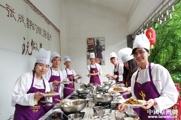 中國(guó)臺(tái)灣網(wǎng)8月7日成都訊 “食在中國(guó),味在四川”,麻辣火鍋、回鍋肉、水煮魚、麻婆豆腐、夫妻肺片……說起“一菜一格,百菜百味”的川菜,全天下的食客都激動(dòng)不已。7月19日,參加全國(guó)臺(tái)聯(lián)2018年臺(tái)胞青年千人夏令營(yíng)四川·成都分營(yíng)的兩岸青年學(xué)生走進(jìn)成都川菜博物館,學(xué)習(xí)川菜知識(shí),親手制作經(jīng)典菜品,開啟了一場(chǎng)穿越時(shí)空的美妙川菜文化之旅。大家盛贊:“好棒的活動(dòng),充實(shí)又有成就感!”