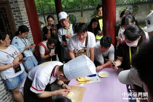 觀看川菜大師蒙眼刀工展示。(圖片來源:四川省臺(tái)聯(lián))