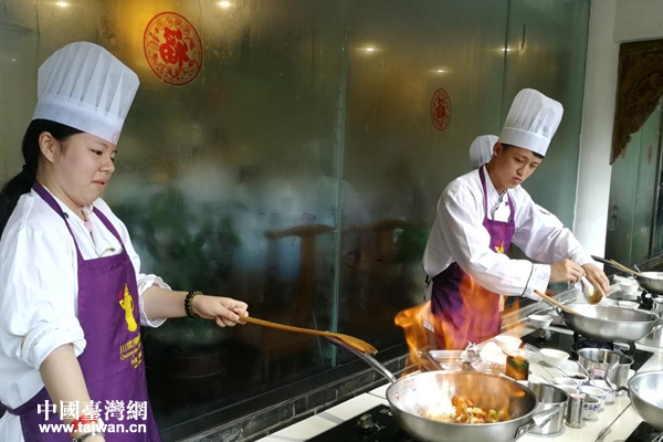 臺(tái)灣同學(xué)體驗(yàn)宮保雞丁制作。(圖片來源:四川省臺(tái)聯(lián))