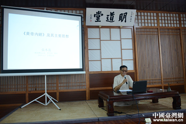 連海書院山長張本義先生為學員們詳盡解讀了《黃帝內經》中的《上古天真論》《四氣調神大論》以及《天年》等篇章中的中醫精髓思想。先生告訴我們如何保有“天真”本性,如何獲得內心的安穩與幸福;把握“法于陰陽,和于術數,食飲有節,起居有常,不妄作勞,形與神俱”的養生長壽要點;用一張太極圖講解春、夏、秋、冬四季養生要義。張先生的授課內容豐富、妙語連珠、引經據典、深入淺出,學員們聽得津津有味,入心入神,同時張先生不失幽默風趣的授課方式,引來聽眾陣陣會心大笑,掌聲不斷,讓聽者在不知不覺中領悟了中華文化的博大精深和無窮魅力。課后,大家紛紛表示,傳承和弘揚中華傳統文化是兩岸青年的共同責任和義務,今后要更加深入、系統的學習和研究中華傳統文化,讓中華文化在兩岸乃至世界發揚光大。