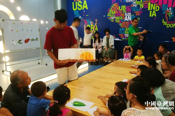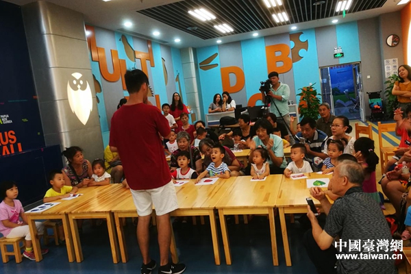 臺灣實習生潘家洋給小朋友們講故事。(中國臺灣網 王莉婷 攝)