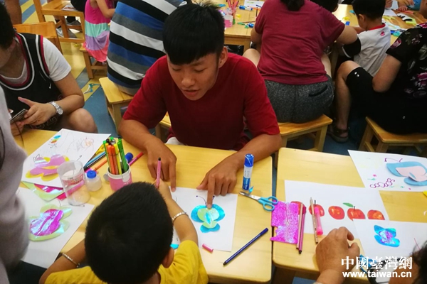 臺灣實習生潘家洋與小朋友們互動。(中國臺灣網 王莉婷 攝)