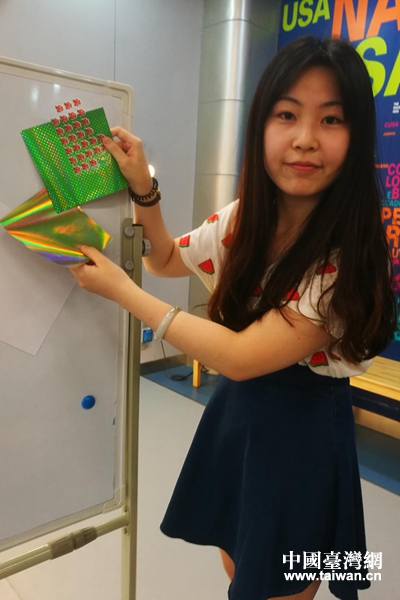 大陸實習生張京靈講述手工課。(中國臺灣網 王莉婷 攝)