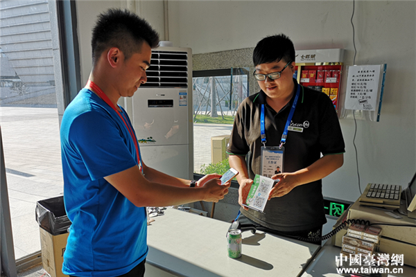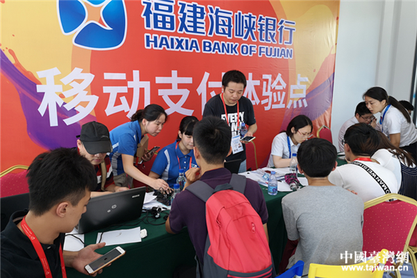 中國臺灣網8月11日福州訊 (記者 郜利敏 張露露)8月10日下午3點半,在海峽青年交流營地文化節B162,來自臺灣中國文化大學的大二學生林詮盛出示臺胞證,由中國移動公司和福建海峽銀行工作人員為其辦理大陸手機卡及銀行卡,然后在手機上下載支付軟件并綁定銀行卡開通支付功能。20分鐘后,他到隔壁超市使用移動支付消費,“真便捷!”