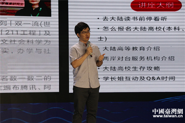 兩岸青年代表林承鐸上臺演講。(中國臺灣網 張露露 攝)