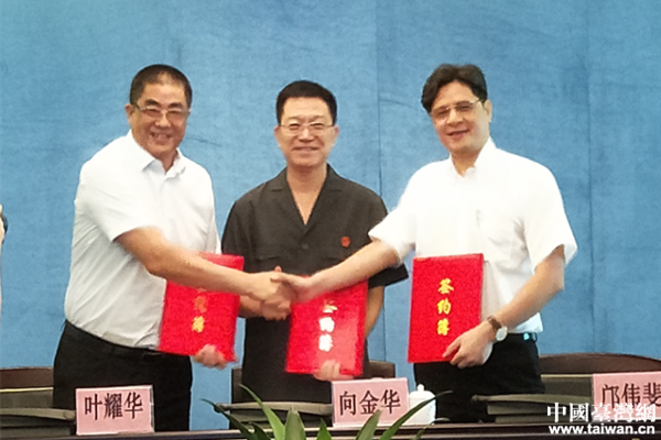 葉耀華、向金華、鄺偉斐參加了簽署儀式。(圖片來源:廣州市臺辦經濟工作處)