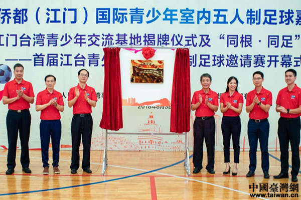 中國臺(tái)灣網(wǎng)8月22日江門訊 為貫徹落實(shí)黨的十九大精神以及習(xí)近平總書記在今年“兩會(huì)”期間對江門的囑托,同時(shí)為圓滿完成國務(wù)院臺(tái)辦今年立項(xiàng)批復(fù)江門市的“同根系列·同足”對臺(tái)重點(diǎn)交流項(xiàng)目任務(wù),積極發(fā)揮江門市對臺(tái)資源豐富的優(yōu)勢,加深江臺(tái)兩地青少年交流,促進(jìn)江臺(tái)兩地文化體育融合。近日,由江門市臺(tái)灣事務(wù)局、江門團(tuán)市委、廣東珠超俱樂部主辦的2018中國僑都(江門)國際青少年室內(nèi)五人制足球嘉年華開幕式暨“江門臺(tái)灣青少年交流基地”揭牌儀式及“同根·同足”活動(dòng)——首屆江臺(tái)青少年室內(nèi)五人制足球邀請賽開幕式在廣東江門新會(huì)體育中心成功舉辦。