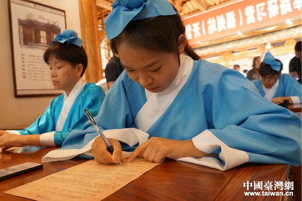 “有機會穿著漢服坐在書院內參加‘鄉試’,感覺很新奇。”臺灣華梵大學學子興奮地說,學習儒家禮儀,并以“士子”的身份趕考,對了解臺灣士子參加科舉考試的歷史很有幫助。清朝時期,臺灣學子要來福建參加“鄉試”,兩岸學子從那時起就共拜先師,共讀經典,在“鄉試”之前,都以進入福州的鰲峰、濂江、正誼等書院學習為榮。