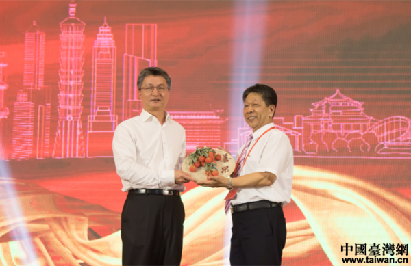 曾衛(wèi)東主任向市臺協(xié)增城分會贈送紀念品。(圖片來源:廣州市增城區(qū)臺辦)