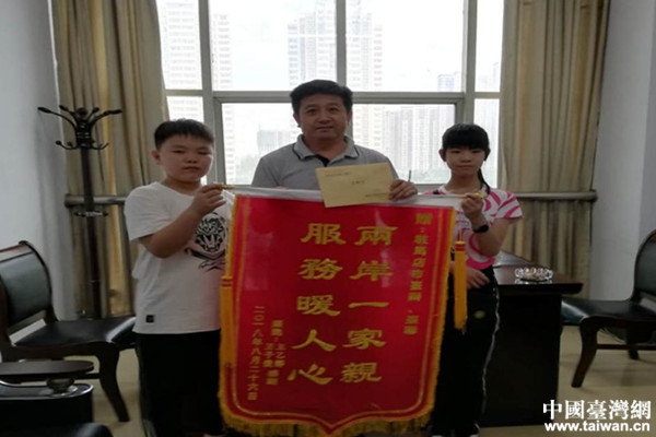 中國(guó)臺(tái)灣網(wǎng)8月28日駐馬店訊 8月26日,河南省駐馬店市臺(tái)辦、臺(tái)聯(lián)收到臺(tái)胞王子俊、王乙婷小朋友送來的一面印有“兩岸一家親,服務(wù)暖人心”的錦旗和感謝信。