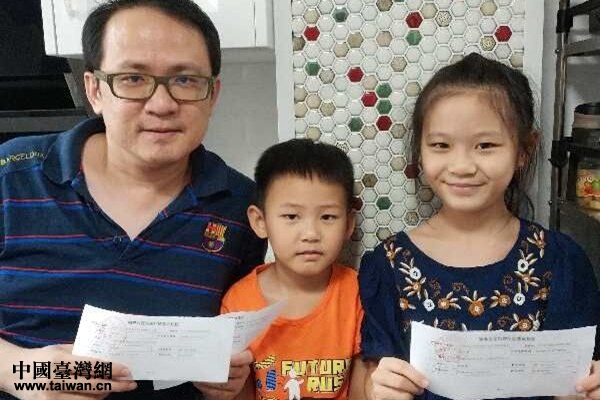 陳雙卯帶著父親和一雙兒女一起來辦理居住證。(圖片來源:上海市臺辦)