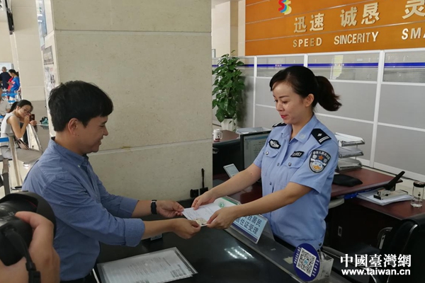 9月1日上午,在瀘州市公安江陽分局龍透關(guān)派出所內(nèi)的業(yè)務(wù)辦理窗口,臺灣同胞趙均彧從民警手中接過了一張“港澳臺居民居住證領(lǐng)取憑證”,在20個工作日后,他將成功領(lǐng)取港澳臺居民居住證。“臺灣居民來往大陸通行證和大陸的居住證在證件號字碼上是不同的,所以,我們在選擇坐高鐵、飛機(jī)的時候,時常會遇到無法到站自助取票的困難,另外,辦理港澳臺居民居住證后,對我將來購買基金、保險、甚至購房都會有很大的幫助。”趙均彧說,他很早就開始關(guān)注港澳臺居民居住證的辦理情況,并主動與瀘州市臺辦進(jìn)行聯(lián)系,希望自己第一時間就能辦理該證。