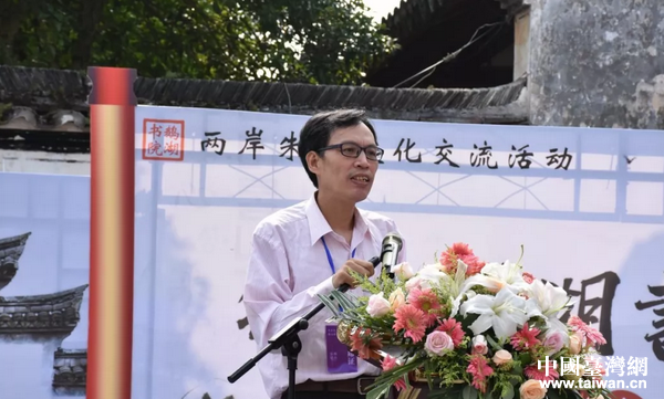 臺灣東海大學教授、臺灣鵝湖月刊社社長蔡家和講話。(圖片來源:上饒市臺辦)