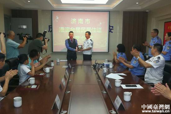中國臺灣網9月12日濟南訊 9月11日上午,山東省濟南市舉行港澳臺居民居住證首發儀式,來自山東中醫藥大學臺灣籍學生白尹豪成為濟南市第一位臺灣居民居住證領證者。