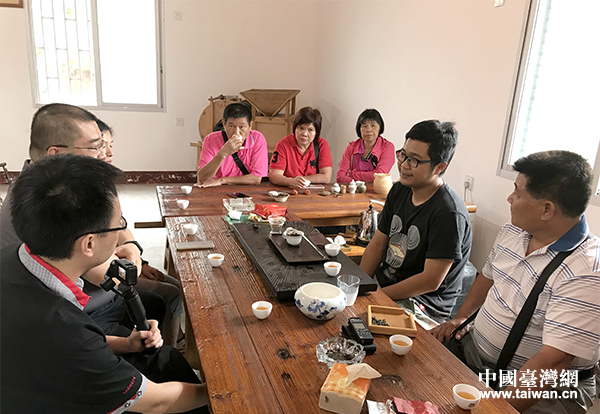 鴻鼎農場開發有限公司董事長李志鴻(右二)向參訪團講述在大陸創業發展的情況。(中國臺灣網 普燕 攝)