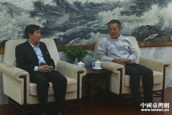 遼寧省臺(tái)辦副主任李成山與鞍鋼集團(tuán)有限公司黨委副書記栗寶卿座談交流。(圖片來源:遼寧省臺(tái)辦)