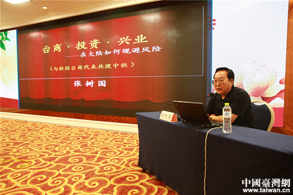 自治區臺辦法律顧問張樹國在“臺商在大陸投資興業如何規避風險”主題法律講座中,從兩岸同宗同源、桂臺兩地經貿投資成果、大陸為服務臺商而搭建的立體服務平臺以及生活、投資與置業存在風險5個方面,提出了臺商在桂投資規避風險的方法和建議。