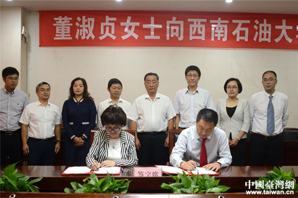 董淑貞與西南石油大學簽訂捐贈協議。(圖片來源:四川省臺聯)