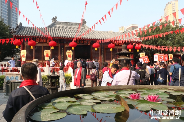 海內(nèi)外媽祖宮廟代表在天后宮拜祭媽祖。(中國臺灣網(wǎng) 張露露 攝)