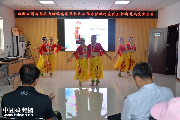 在社區服務大廳,臺灣嘉賓詳細了解了鳳岐里社區基本情況及一站式服務大廳各窗口職能;在社區市民學校,大家饒有興趣地欣賞了社區居民自發組織的文藝表演,京劇《四郎探母》、舞蹈《阿里山的姑娘》、天津時調《夢回神州》、合唱《走向復興》等曲目,受到了臺灣團組的高度贊揚,不時掌聲雷動、呼聲四起。