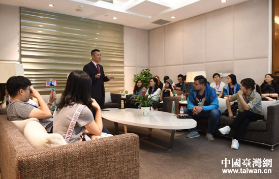 臺(tái)商尤榮川向采訪團(tuán)介紹企業(yè)精致服務(wù)理念。(圖片來源:四川省臺(tái)辦)