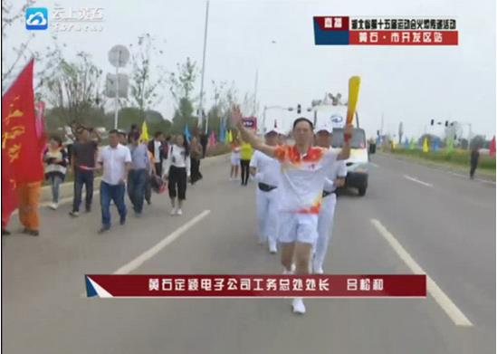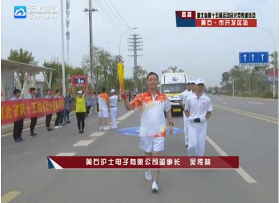 黃石滬士電子有限公司董事長吳傳林火炬傳遞。(圖片來自網絡視頻截圖)