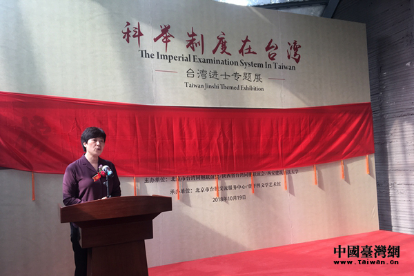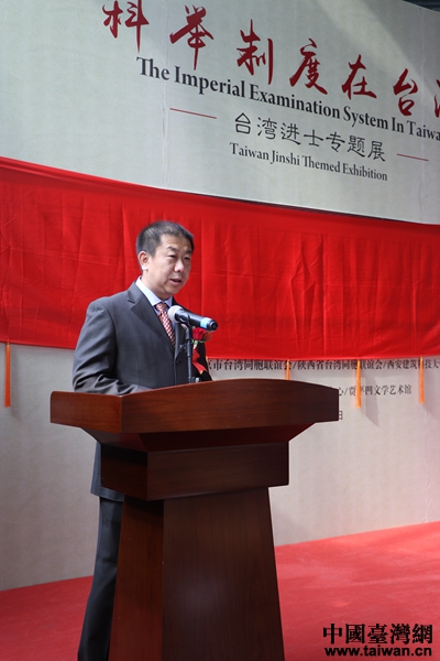 中國(guó)臺(tái)灣網(wǎng)10月19日西安訊 (記者 郜利敏)19日上午,由北京市臺(tái)聯(lián)、陜西省臺(tái)聯(lián)、西安建筑科技大學(xué)主辦的“科舉制度在臺(tái)灣——臺(tái)灣進(jìn)士專題展”展覽在陜西省西安市賈平凹文學(xué)藝術(shù)館舉行。本次展覽為期6天。