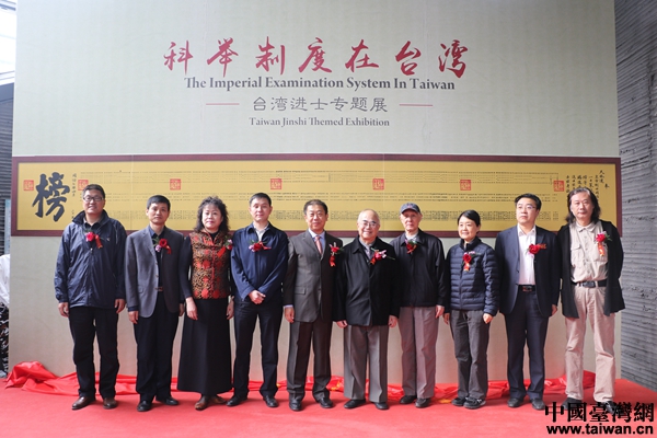 出席開(kāi)幕式的領(lǐng)導(dǎo)和嘉賓為展覽揭幕并合影留念。(中國(guó)臺(tái)灣網(wǎng) 郜利敏 攝)