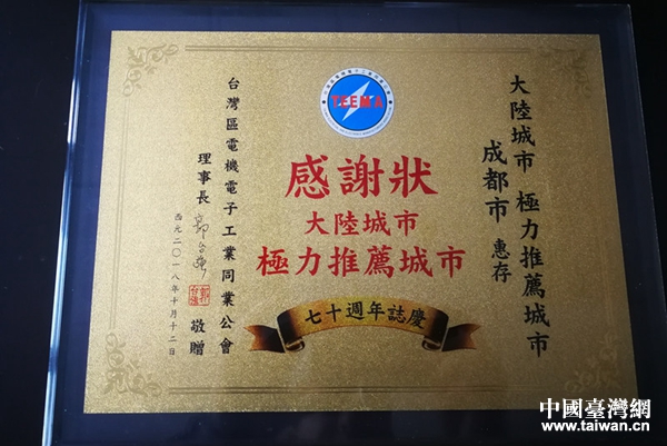 成都連續(xù)16年獲評(píng)臺(tái)商投資“極力推薦城市”。(圖片來(lái)源:成都市臺(tái)辦)