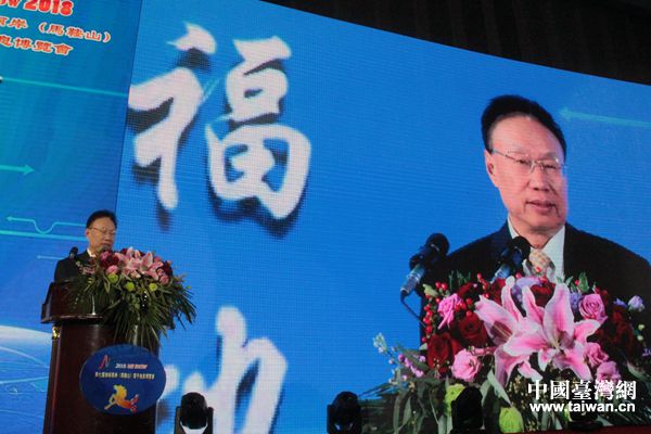 中國臺灣網10月27日馬鞍山訊 (記者 王莉婷)10月26日,2018第七屆海峽兩岸(馬鞍山)電子信息博覽會在馬鞍山市會展中心舉行開幕儀式。馬鞍山市委書記張岳鋒、海峽兩岸關系協會副會長李亞飛、臺灣電電公會理事長郭臺強等領導和嘉賓出席開幕式并致辭。