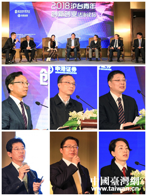 中國臺灣網12月4日上海訊 由國務院臺辦法規局指導,上海市臺辦支持,國浩律師事務所、申港證券股份有限公司主辦,上海海峽兩岸法學研究中心協辦的“2018滬臺青年創新創業法治論壇”,12月1日在上海舉辦。國臺辦法規局、上海市臺辦負責人、臺資銀行業、企業家、兩岸創業創新人士、證券業、法律界的代表近300人與會,就“青年創業·法治護航”主題作探討和交流。國臺辦法規局副局長唐正瑞、上海市臺辦副主任王立新、國浩律師事務所首席執行合伙人呂紅兵致辭。申港證券股份有限公司總裁劉化軍、長寧區法院副院長金練紅、康師傅集團法律顧問黃臺英分別就大陸資本市場及臺資企業在內地上市、臺灣同胞合法權益維護、兩岸青年創新創業法治環境發表了主旨演講。