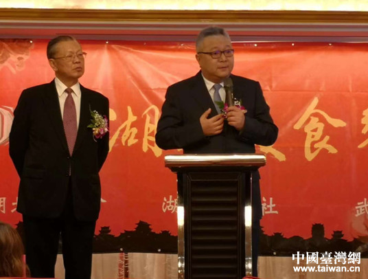 武漢市臺辦主任劉紅鳴在饗宴上致辭。他向在臺湖北鄉親介紹了近年來湖北武漢在經濟社會建設方面取得的顯著成就,以及城市面貌發生的巨大變化,邀請在臺湖北鄉親多回家鄉走走看看,投資創業、求學就業、旅游觀光。