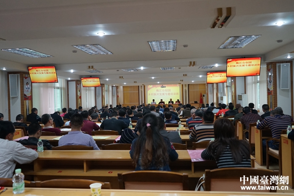 中國臺灣網12月18日梅江訊 為進一步學習貫徹習近平總書記視察廣東重要講話精神,做大做強鄉村產業,提高發展的平衡性和協調性,加快推動鄉村振興發展,近日,廣東省梅州市梅江臺創園管委會聯合梅江區臺辦、區農業局舉辦了梅江臺創園鄉村振興發展專題培訓班。此次專題培訓活動分兩個班,分別在區委黨校、西陽鎮阿鯉廊現代農業示范基地同時舉行,專門邀請了市委黨校講師、臺灣農業專家團隊進行授課,采取集中授課、研討交流與現場教學相結合的方式,各鎮(街道)負責鄉村振興發展的分管領導、區直實施鄉村振興戰略領導小組成員單位分管領導、各村支部書記(主任)、臺創園入園企業和規模農業企業負責人、茶商、茶農共200多人參加了此次培訓。