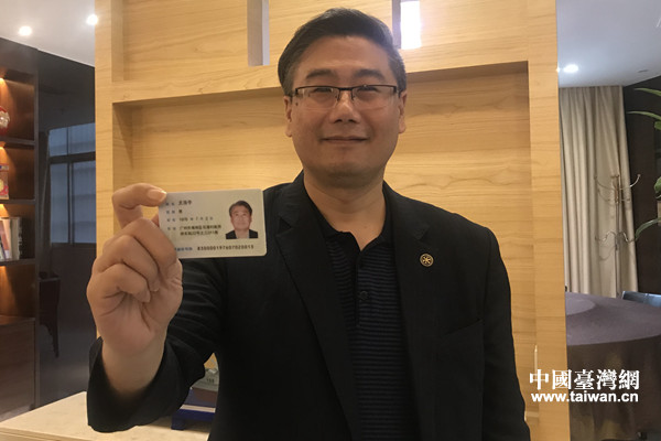 尤浩宇向記者展示了他的居住證。(中國(guó)臺(tái)灣網(wǎng) 趙苗青 攝)