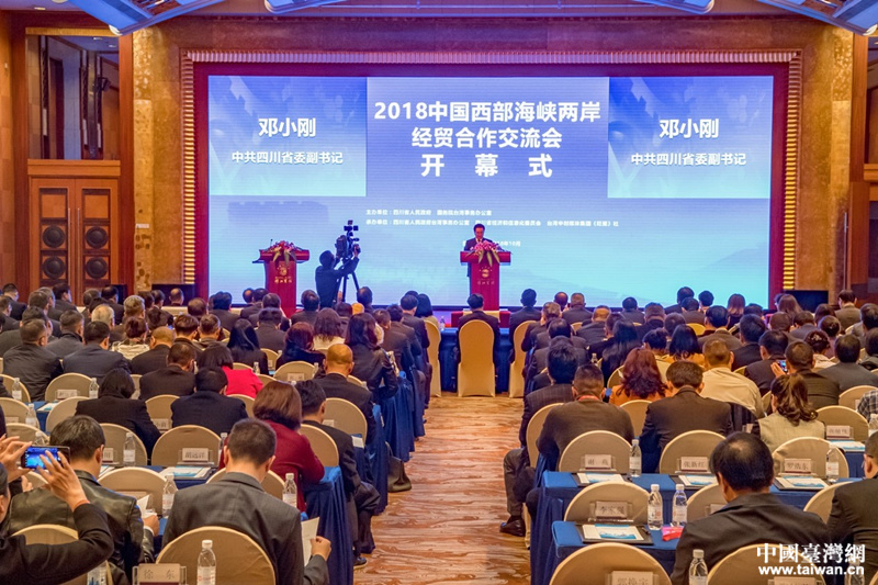 “中國(guó)西部海峽兩岸經(jīng)貿(mào)合作交流會(huì)”始于1998年,從2013年開(kāi)始每年連續(xù)舉辦,已成為兩岸經(jīng)貿(mào)交流合作的知名品牌。圖為2018年10月17日舉行的“2018中國(guó)西部海峽兩岸經(jīng)貿(mào)合作交流會(huì)”開(kāi)幕式現(xiàn)場(chǎng)。(圖片來(lái)源:四川省臺(tái)辦)