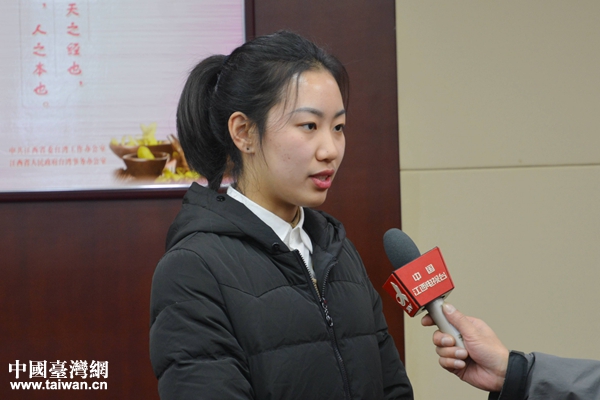 江西財大臺籍學生欒雨佳接受采訪。(圖片來源:江西省臺辦秘書處)