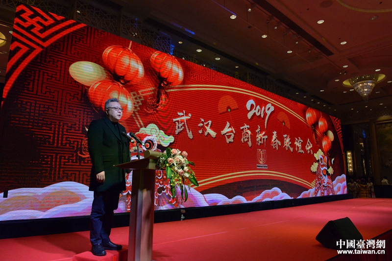 武漢臺協會長、臺商蕭永瑞致辭表示,過去一年,武漢臺協在市臺辦指導下,團結在漢臺胞,匯聚了兩岸和平發展正能量。新的一年,在漢臺商臺胞要凝聚共識、加深交流,與武漢榮辱與共,一同迎接新年、把握新機遇。