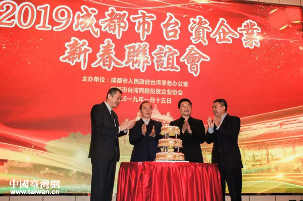 中國臺灣網(wǎng)1月18日成都訊 2019年1月16日,2019成都市臺資企業(yè)新春聯(lián)誼會舉行。省市有關部門負責人與在蓉臺商共計550余人歡聚一堂,喜迎新春。四川省臺辦主任羅治平、成都市委常委吳凱、成都市臺協(xié)會長徐大偉出席并致辭,成都市臺辦主任戴浚主持聯(lián)誼會。