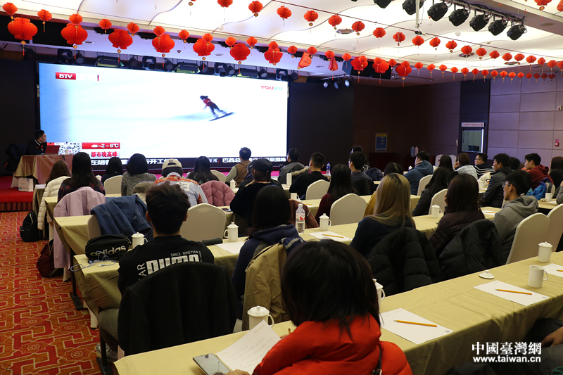 當天下午,為了讓臺灣學生更加了解冬奧會,張家口市籌辦冬奧會領導小組辦公室市場處楊責坤作了冬奧會為主題的講解,詳細介紹了關于北京冬奧會申辦歷程、籌建情況以及冬奧會和冬殘奧會知識等,并科普了滑雪等相關運動知識。