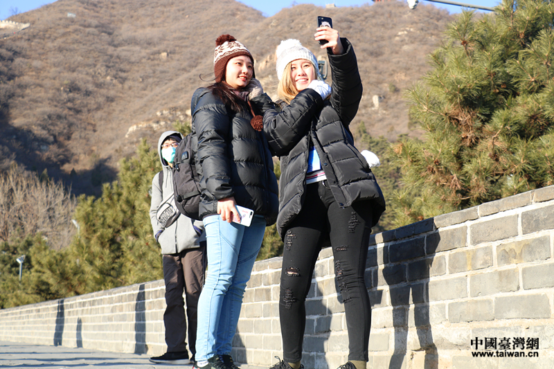 臺灣學生游覽長城并拍照留念。(中國臺灣網 郜利敏 攝)