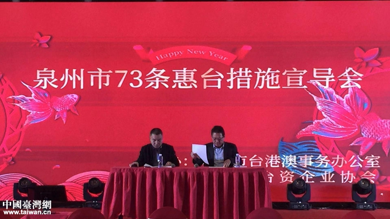 福建泉州舉辦“惠臺(tái)73條”措施宣導(dǎo)暨臺(tái)商臺(tái)胞聯(lián)誼活動(dòng)。(圖片來源:泉州市臺(tái)港澳辦)