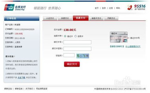 輸入銀行卡號、密碼,進行網銀支付并確認。