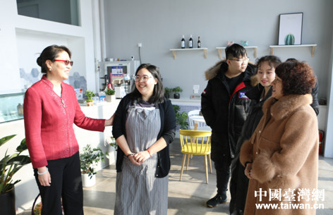 臺胞潘姵蓉和新疆塔城小伙夏斌通過網絡相識相愛,現在組建了自己的小家庭,小兩口在烏魯木齊市經營一家西點甜品店。閻梅主任一行來到他們的小店,詳細詢問了日常經營情況,同時向來疆創業發展的臺灣青年表示贊揚,并介紹了相關政策。鼓勵小兩口在疆發展信心,希望踏實工作,加倍努力,爭取擴大經營。潘姵蓉表示,自己是學習烘焙專業的,手工制作是她的最愛,來烏魯木齊市居住后,就開啟了線上手工蛋糕銷售,客戶還挺多,經常都忙不過來,去年又開了這家西點甜品實體店,認識了很多新疆朋友,大家對她都非常友善,讓她感受到了新疆的熱情,也讓她一個遠嫁到新疆的臺灣女孩非常感動和欣慰。她稱,自己也非常喜歡新疆的氣候和飲食,常常向島內的親朋好友介紹新疆,邀請他們來疆走走看看,了解認知新疆。今后會積極參與臺辦舉辦的各類活動,繼續腳踏實地努力工作,爭取更大發展。